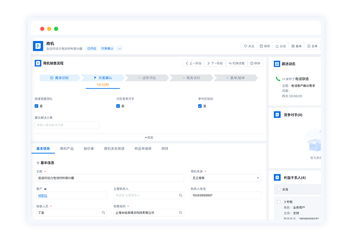 ”圣奧是典型的ToB業務銷售型制造公司,DNA天性決定了需要客戶關系管理、商機管理。在營銷管理上,我們需要知道整個項目每個階段的情況,包括客戶訴求、關鍵決策人等。沒有數字化的手段,我們很難掌握到這些數據。“