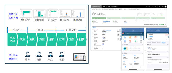 集成周邊系統(SAP、OA),實現銷售流程數據打通;通過智能 分析工具多維度的數據洞察分析,支持市場判定與決策。