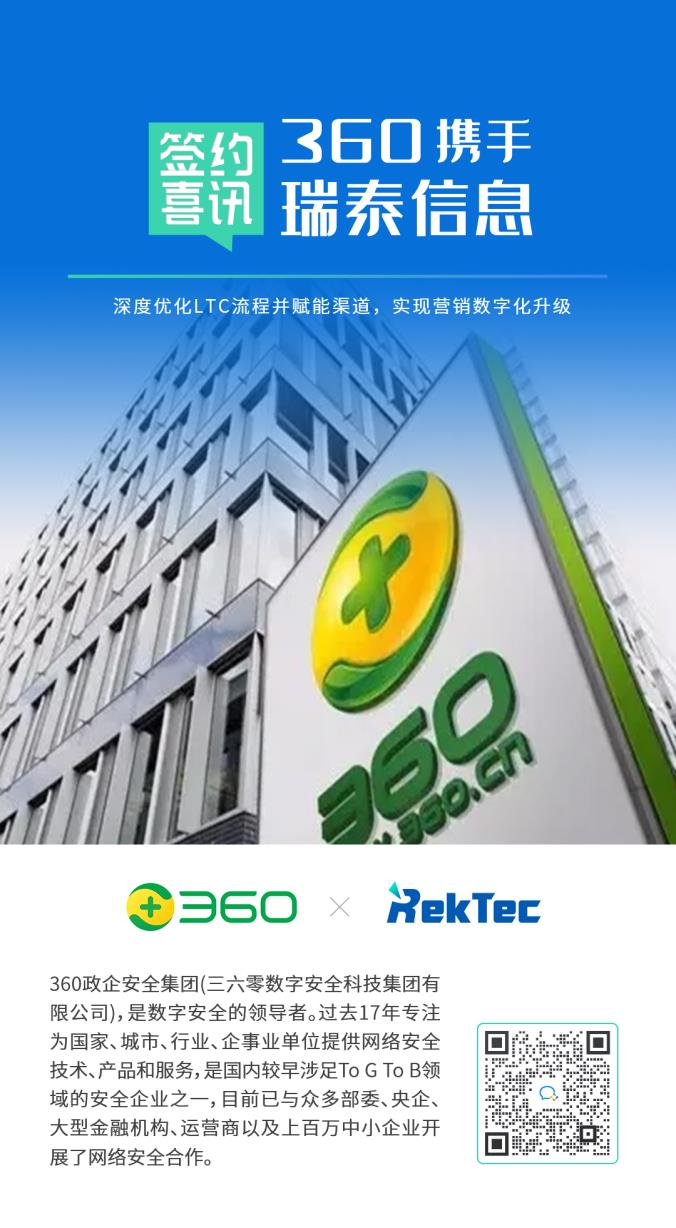 簽約喜訊 | 瑞泰信息攜手數字安全領導者360,數字化功能持續迭代再升級