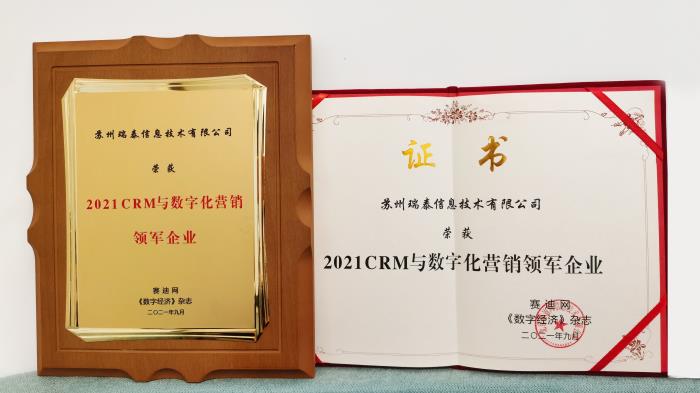 瑞泰信息憑借深耕營銷服務(wù)數(shù)字化領(lǐng)域技術(shù)積淀和行業(yè)經(jīng)驗,榮獲“2021CRM與數(shù)字化營銷領(lǐng)軍企業(yè)”。
