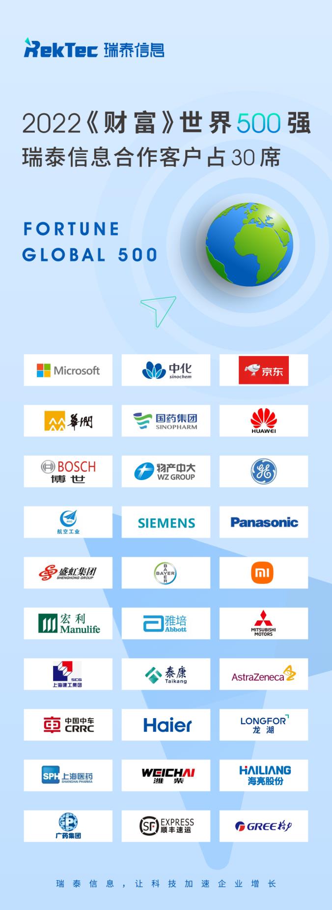更加值得高興的是,瑞泰信息30家標(biāo)桿合作客戶入榜世界500強(qiáng)。對(duì)此,瑞泰信息向所有合作客戶表達(dá)最真誠(chéng)的祝福和最熱烈的祝賀!未來,瑞泰信息將攜手最優(yōu)秀的行業(yè)巨擘,一起在數(shù)字化時(shí)代勇攀高峰,用科技的力量加速企業(yè)增長(zhǎng)。